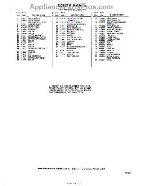 Parts for Whirlpool SXU500W1: 03 - Section Parts