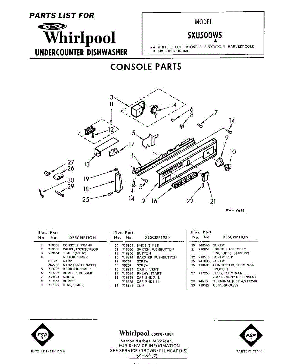 Parts for Whirlpool SXU500W5: 01 - Section Parts