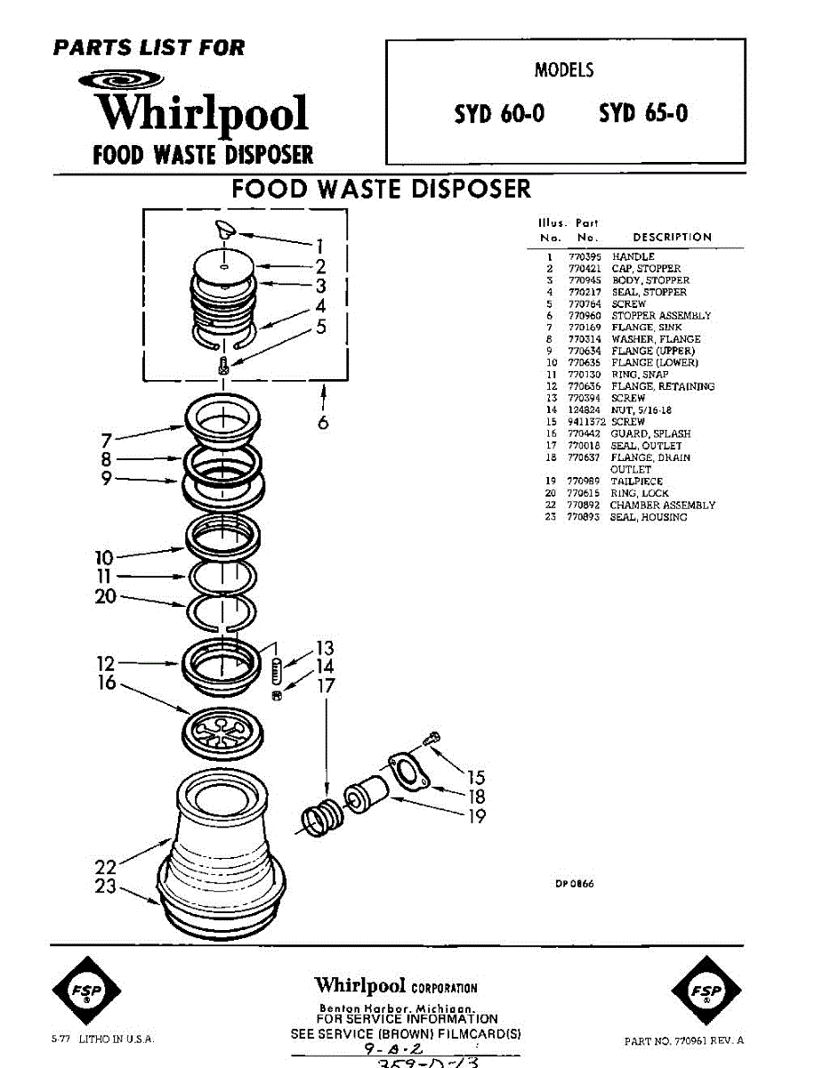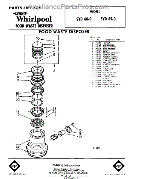 Parts for Whirlpool SYD600: 01 - Section Parts