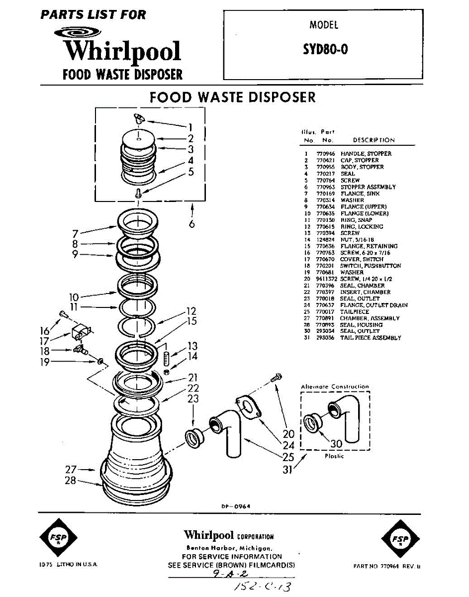 Parts for Whirlpool SYD800: 01 - Section Parts