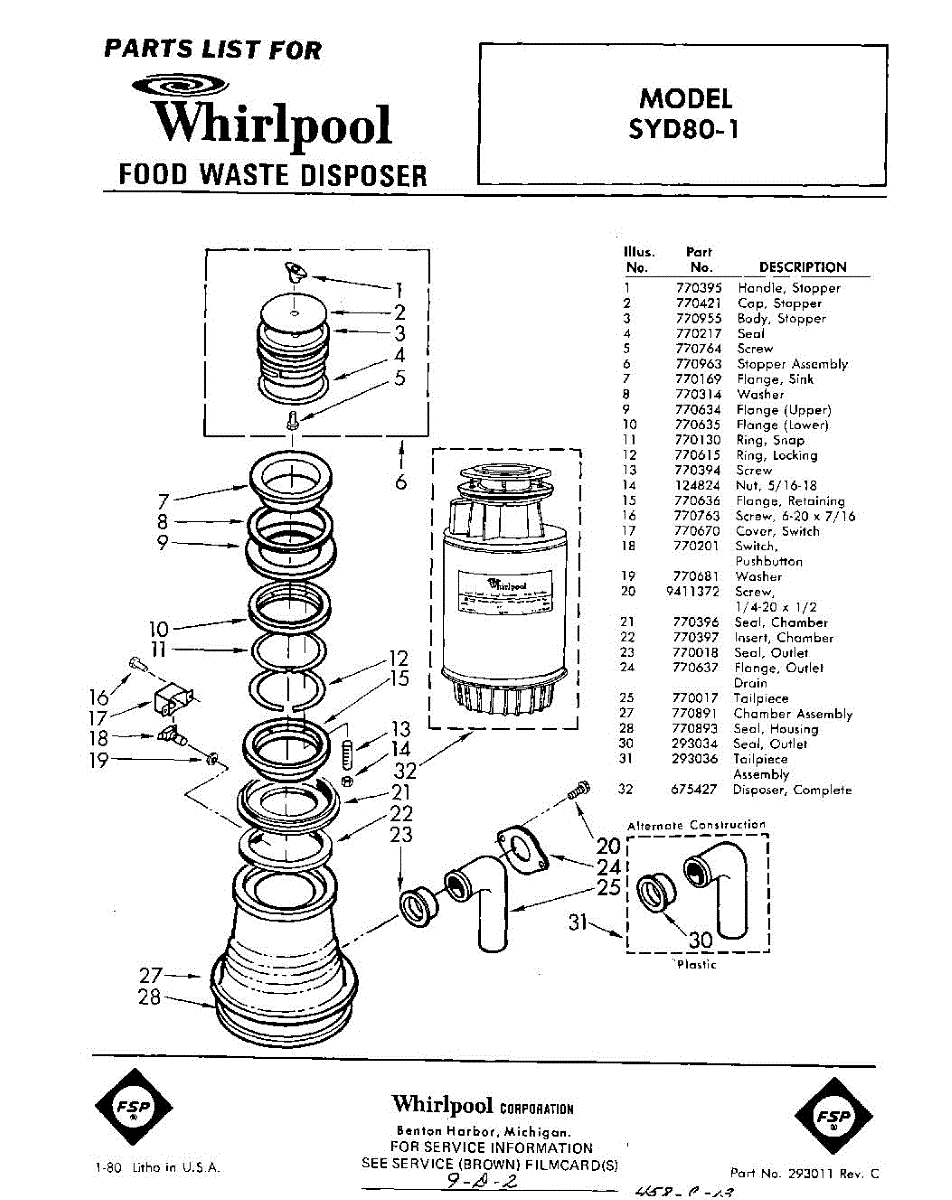 Parts for Whirlpool SYD801: 01 - Section Parts