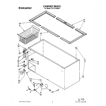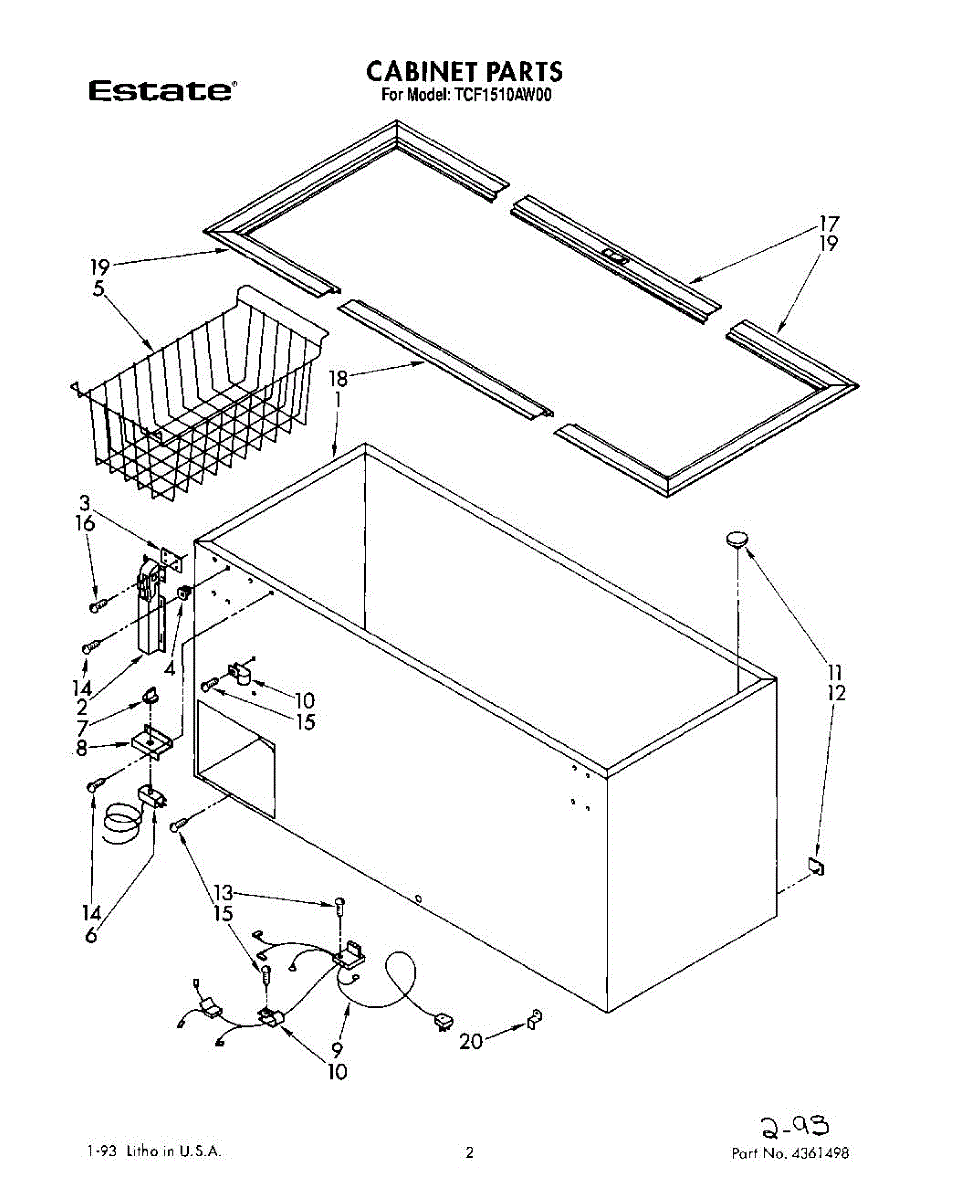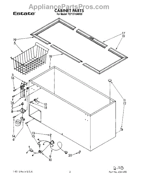 Replacement door hinge assembly for freezers. Mounts to the cabinet and door to provide smooth opening and closing. Needed when hinges are cracked or worn.