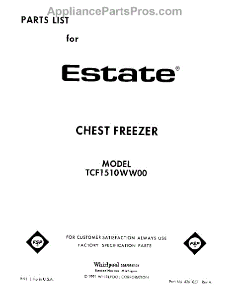 Parts for Whirlpool TCF1510WW00: 01 - Section Parts