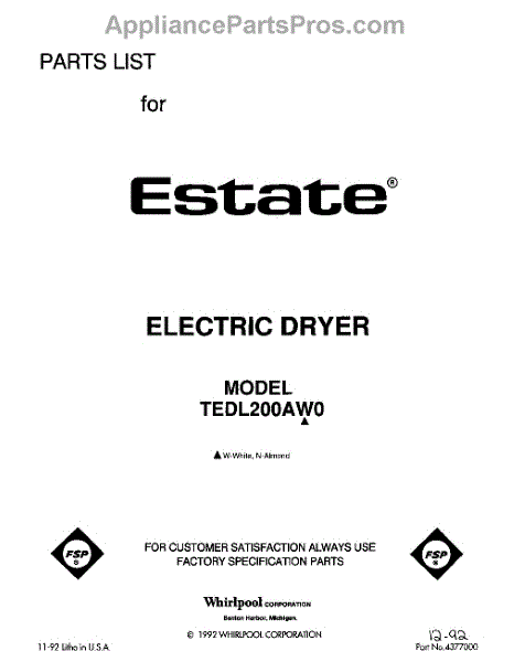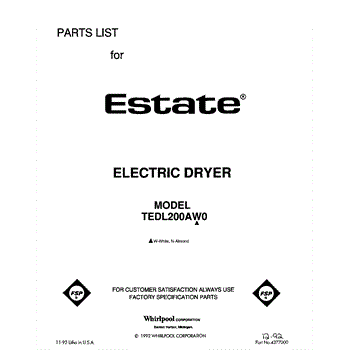 Parts for Whirlpool TEDL200AW0: 01 - Section Parts