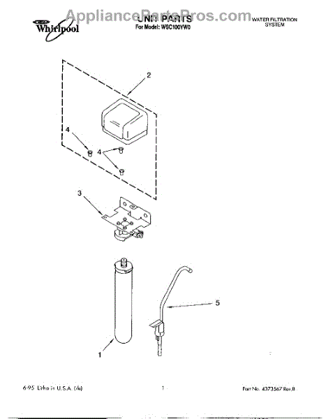 Replacement water filter cartridge for your Whirlpool® Water Filtration System. System I - 1-Sediment Carbon filter which reduces chlorine and particulate matter by a minimum of 92%. Fits WSC100 models.