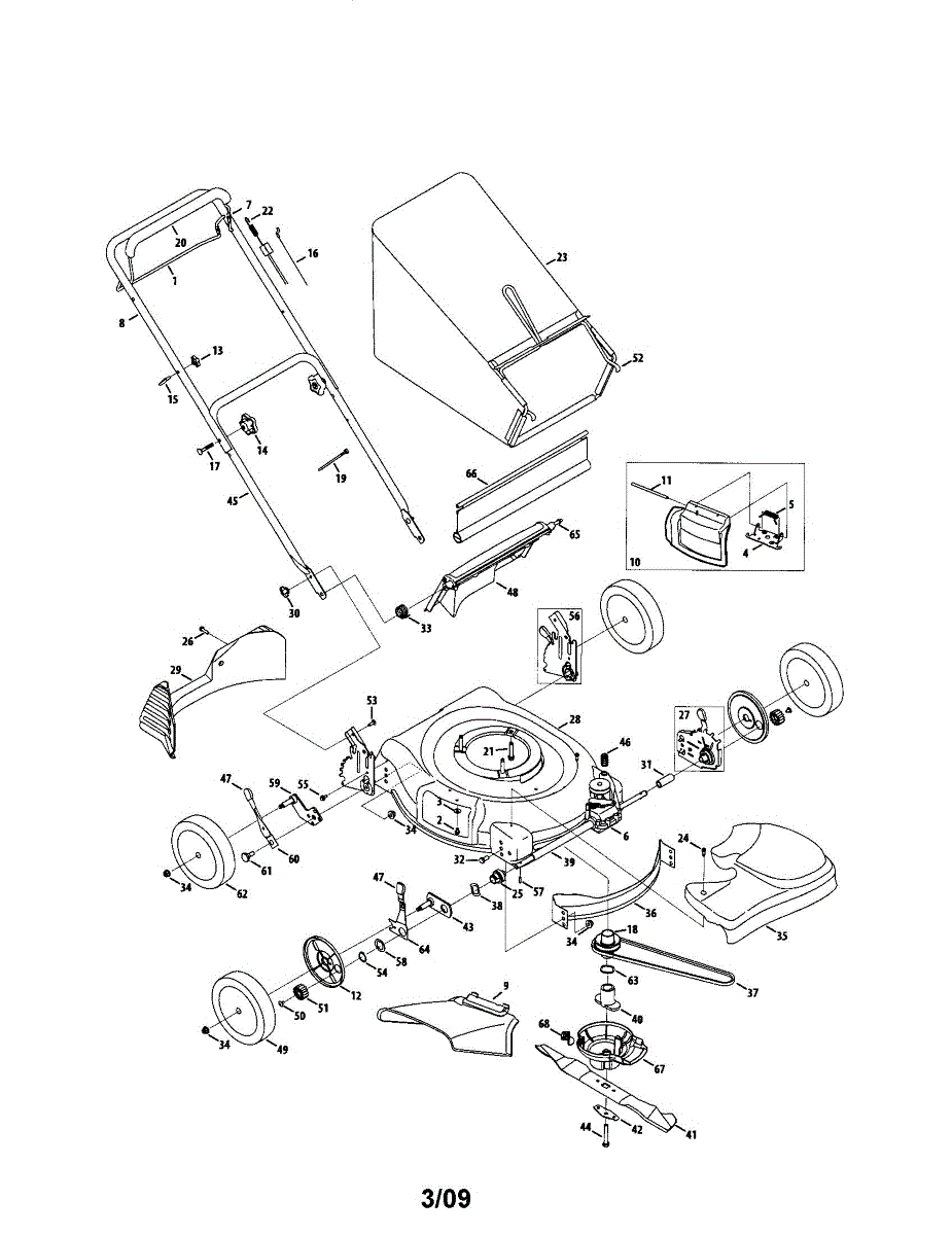 Handle assembly for push and self-propelled walk-behind mowers. Controls speed, settings, and maneuverability. Replace if cracked, bent, or broken.