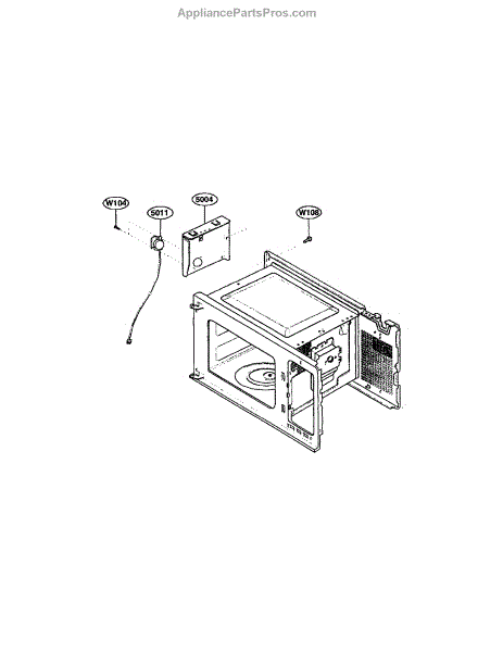 Mounting screw for microwave assembly. Secures internal or external components. Replace if stripped, missing, or damaged during repair or installation.
