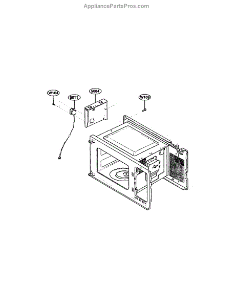 Mounting screw for microwave assembly. Secures internal or external components. Replace if stripped, missing, or damaged during repair or installation.