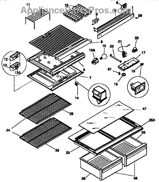 Parts for Kenmore 253.9348000 (2539348000, 253 9348000): Separator And Shelves Parts