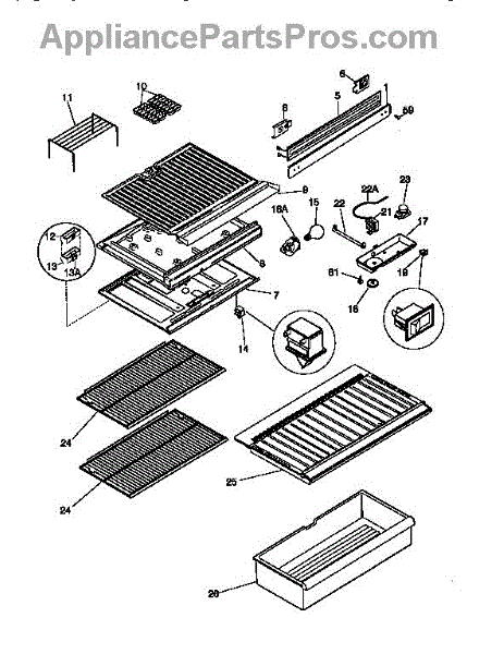 Replacement crisper drawer for refrigerator fresh food compartment. Replace if cracked, broken, or missing to restore organized produce storage and smooth sliding.