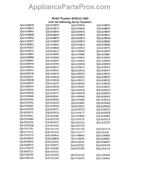 Parts for Whirlpool BJSSAC0800: 09 - Serial Numbers For Bjssac1000 Parts