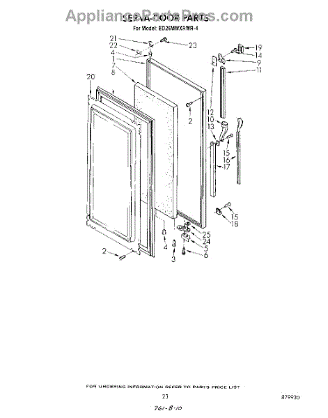 This screw is used to secure the handle end cap to the center of the door. The screw size measures 8-18 x 1/2 inches.