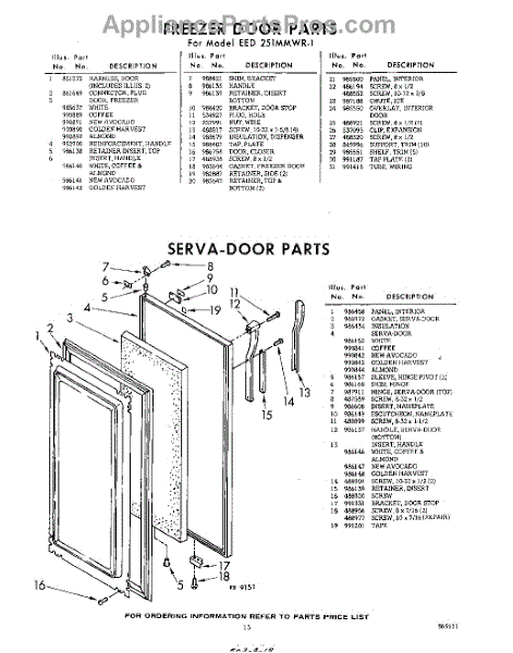 Parts for Whirlpool EED251MMWR1: 13 - Serva-Door Parts