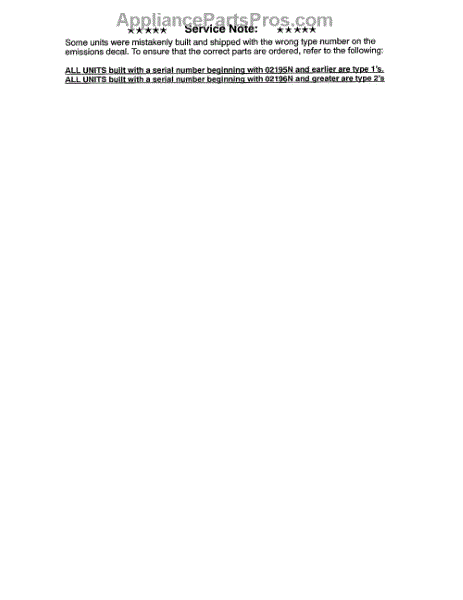 Parts for Weedeater BV200 TYPE 1 (RECON): Service Note Parts