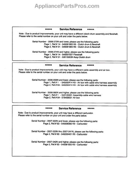 Parts for Husqvarna 124L: Service Reference Parts