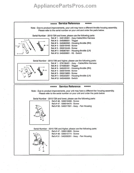 Parts for Husqvarna 128C: Service Reference Parts