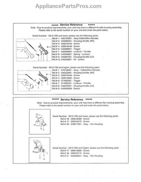 Parts for Husqvarna 128L: Service Reference Parts