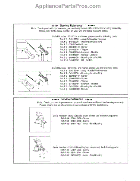 Parts for Husqvarna 128RJ: Service Reference Parts