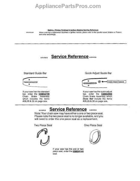 Parts for Poulan 260 TYPE 6: Service Reference Parts