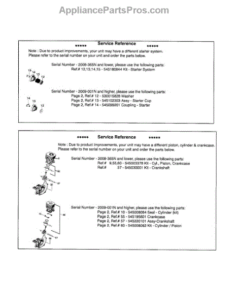 Parts for Husqvarna 124L: Service Reference Parts