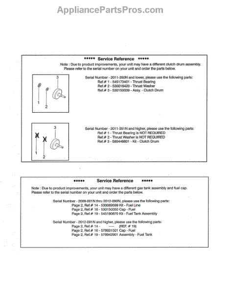 Parts for Husqvarna 128RJ: Service Reference Parts