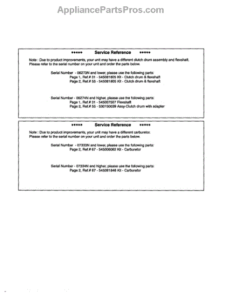 Parts for Poulan BC2126: Service Reference Parts