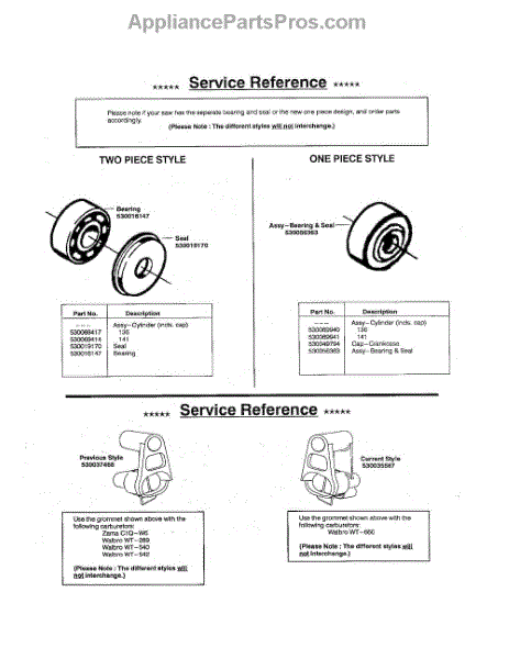 Parts for Husqvarna 136: Service Reference Note Parts