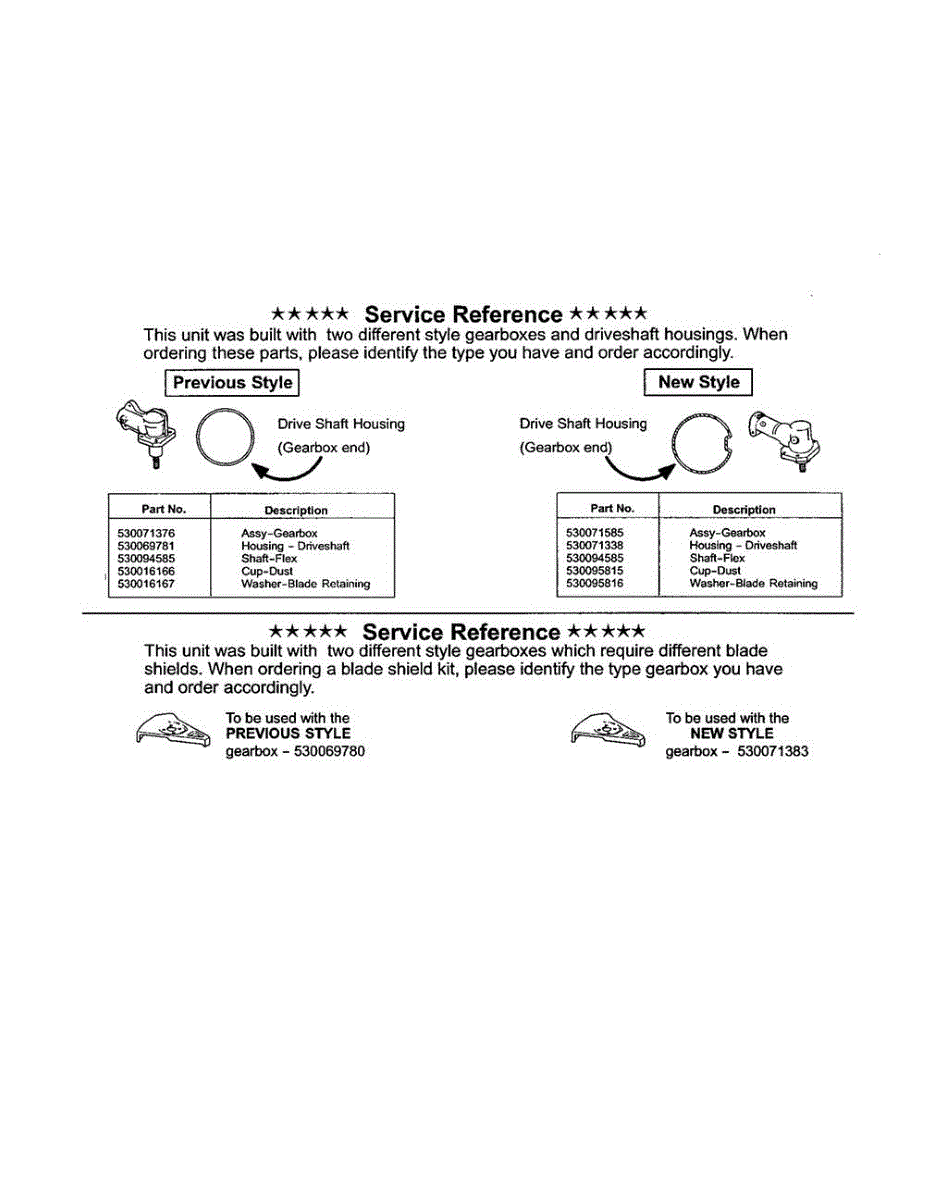 Parts for Weedeater BC2400-TYPE 3: Service Reference Note Parts