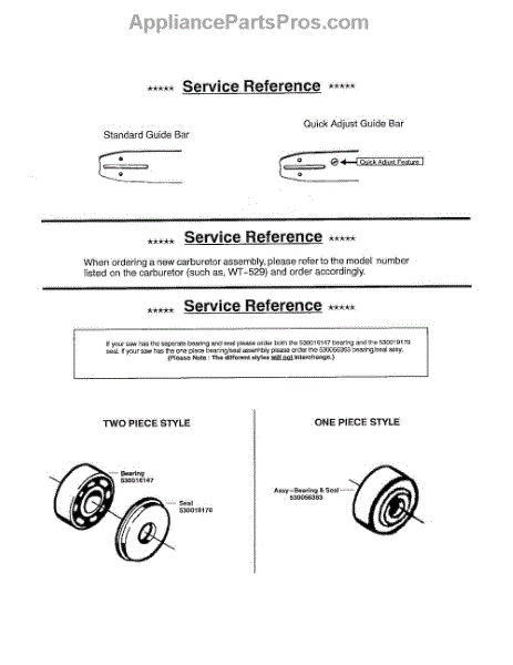 Parts for Poulan 295 TYPE 3: Service Reference Parts