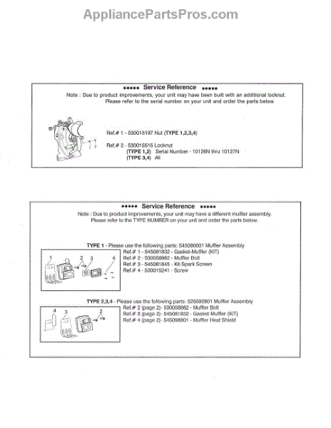 Parts for Poulan GBV 345 TYPE 1: Service Reference Parts