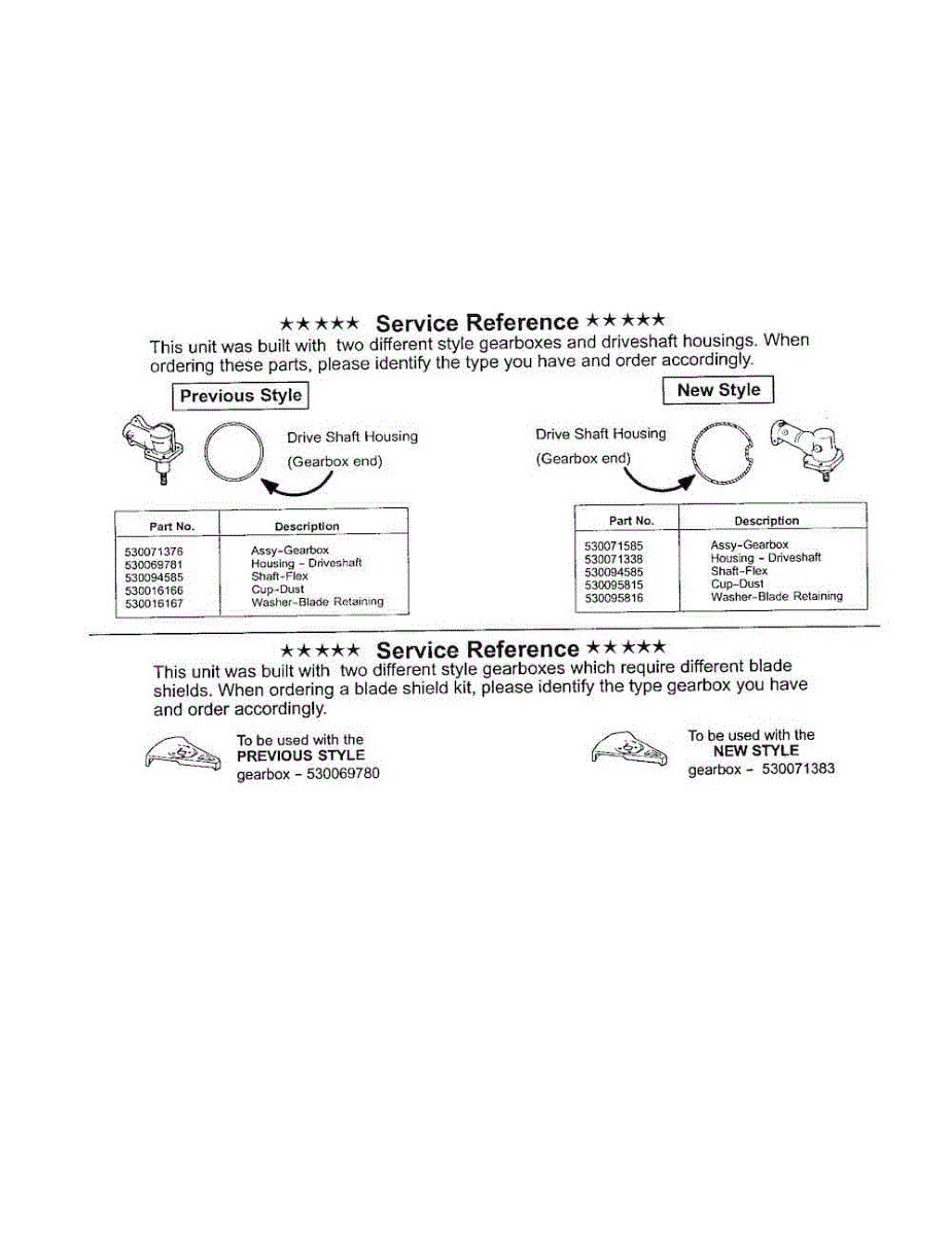Parts for Weedeater BC2400-TYPE 5: Service Reference Parts