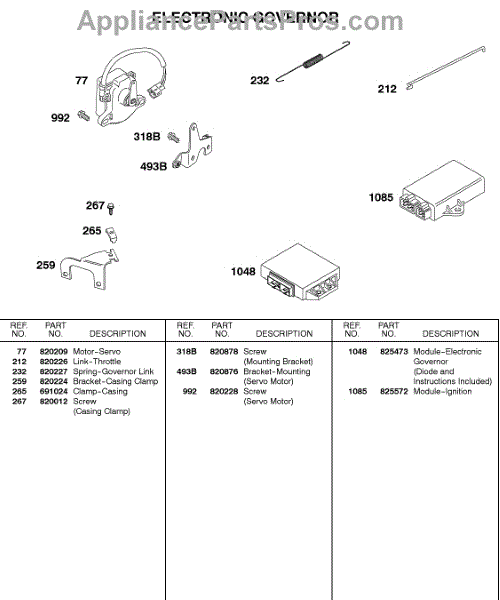 Parts for Briggs & Stratton 587447-0105-99: Servo, Modules, Spring, Link Parts