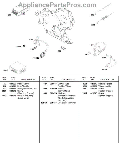 Parts for Briggs & Stratton 584447-0205-E2: Servo Motor, Modules, Springs Parts