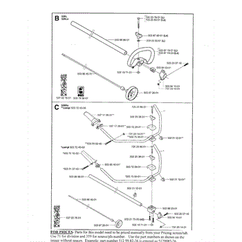 Parts for Husqvarna 326C: Shaft, Handle Assembly Parts
