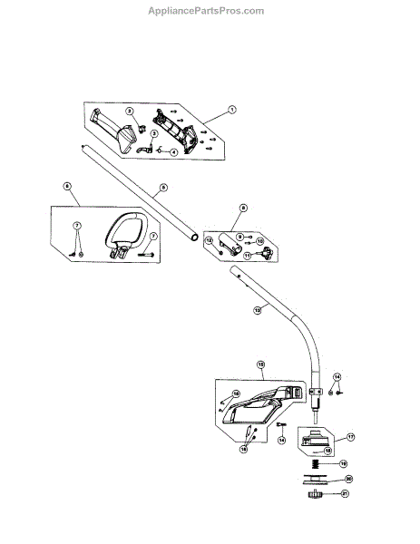 This coupler features a split-boom design that includes the knob, coupler, and the screws required to attach the upper shaft and lower boom before using the trimmer. Because of constant exposure and potential debris impacts, the coupler can become damaged over time and with regular use. The knob and screws can also become damaged or lost, which would require replacing the entire unit with an OEM replacement like the one here. This genuine OEM drive shaft coupler is manufactured by RYOBI and designed for use with their trimmers, as well as machines from MTD, Yard Man, Yard Machines, Bolens, Troy-Bilt, and Cub Cadet. It can also be used with select models of edgers and pruners from these brands. This coupler is sold as an individual assembly with all of the pieces required to complete the installation. The shaft is made of durable metal and the knob is a sturdy plastic piece. It will require a screwdriver with a Philips head to replace this part. Always wear gloves when working on lawn and garden equipment.
