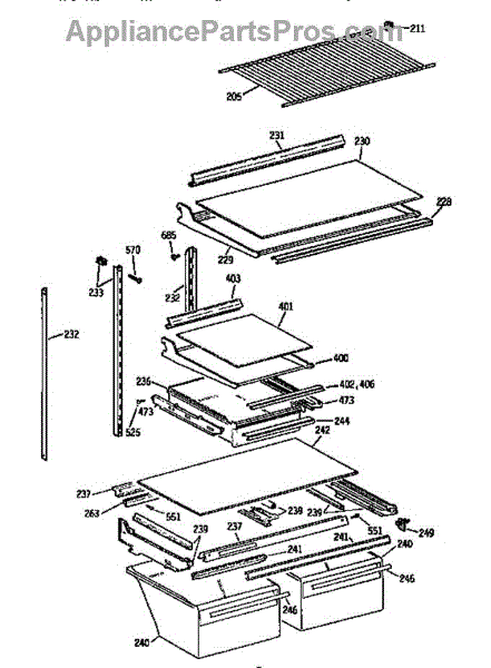 Parts for Ge TBX21N1XDRAA: Shelf Assembly Parts
