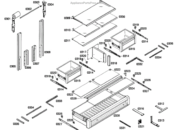 Drawer rail for bottom-mount refrigerators. Supports and guides refrigerator or freezer drawers for smooth sliding. Replace if cracked, bent, or broken.