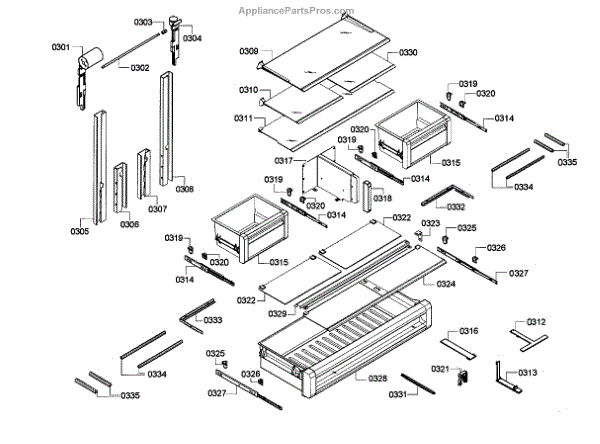 Drawer rail for bottom-mount refrigerators. Supports and guides refrigerator or freezer drawers for smooth sliding. Replace if cracked, bent, or broken.