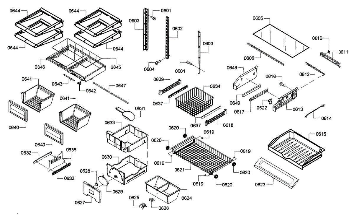 Replacement door basket for refrigerator storage compartments. Installs on the interior door to organize condiments and small items. Needed when cracked or broken.