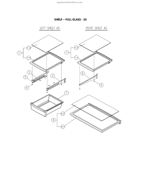 Parts for Kenmore 111.60619911 (11160619911, 111 60619911): Shelf - Full Glass Parts