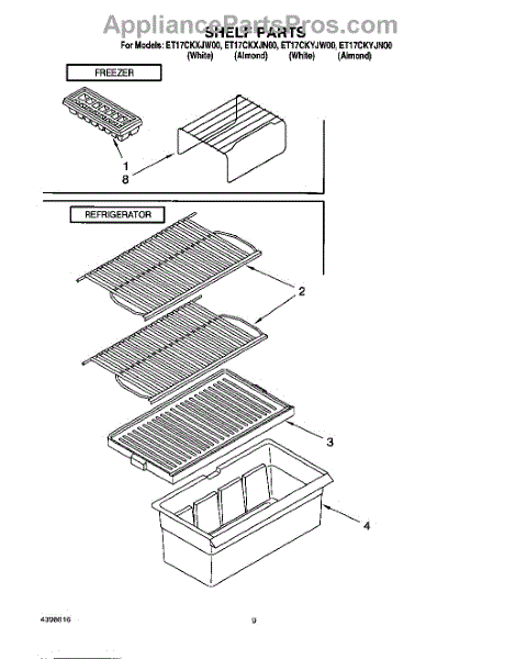 Repair manual for refrigerators and freezers made by Whirlpool. Covered brands include Whirlpool, Sears, Kenmore, Kitchen Aid, Roper, and Estate. Easy to follow photographs and step-by-step repair procedures.