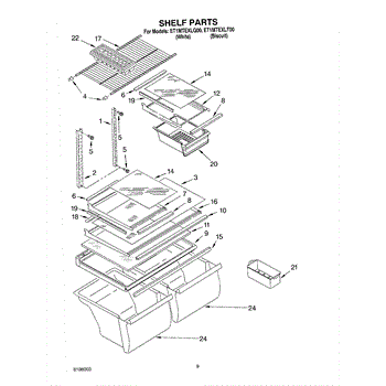 Causes relate to impact damage from overloading or appliance shifting. Normal wear from continuous use may also weaken shelf material integrity over 15+ years.
