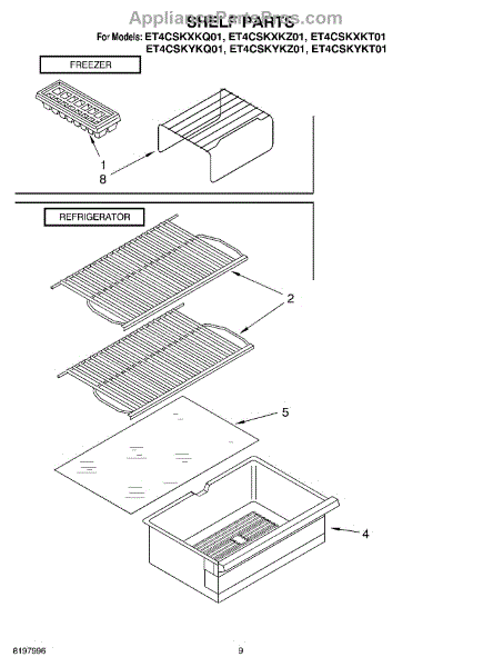 Parts for Whirlpool ET4CSKYKQ01: 05 - Shelf, Optional Parts