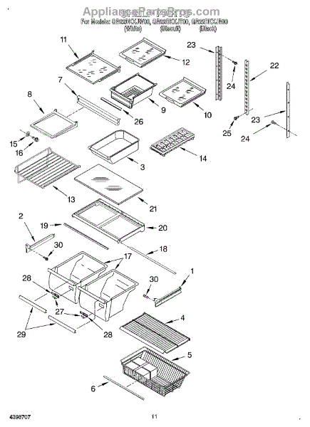 This refrigerator ice bucket stores ice made by the icemaker and positions it for dispensing. Replacing a cracked or warped bin restores smooth ice flow and helps prevent jams, spills, and mess inside the freezer.