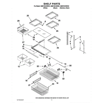 Note: For the right side drawer glide, use part number WP67001053