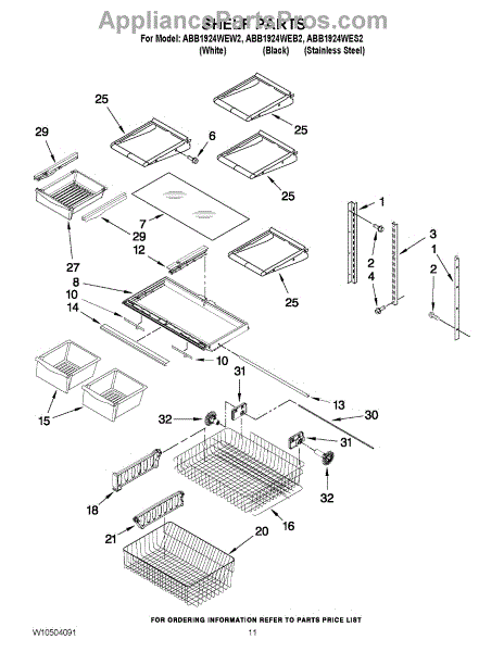 Note: For the right side drawer glide, use part number WP67001053