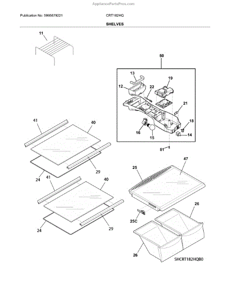 Parts for Crosley CRT182HQW3: Shelf Parts