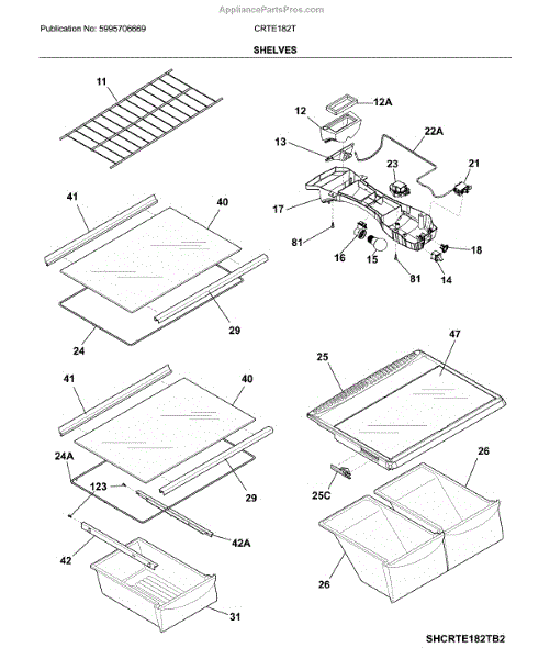 Parts for Crosley CRTE182TW2: Shelf Parts