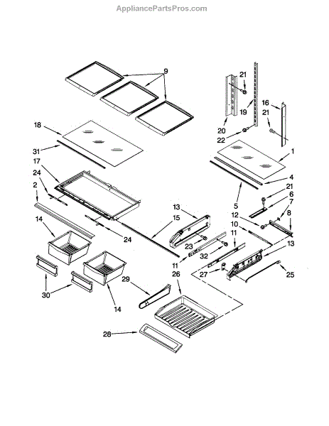 Shelf support ladder for refrigerators. Installs on interior walls to hold shelves in place. Replace if cracked, broken, or missing for proper support.