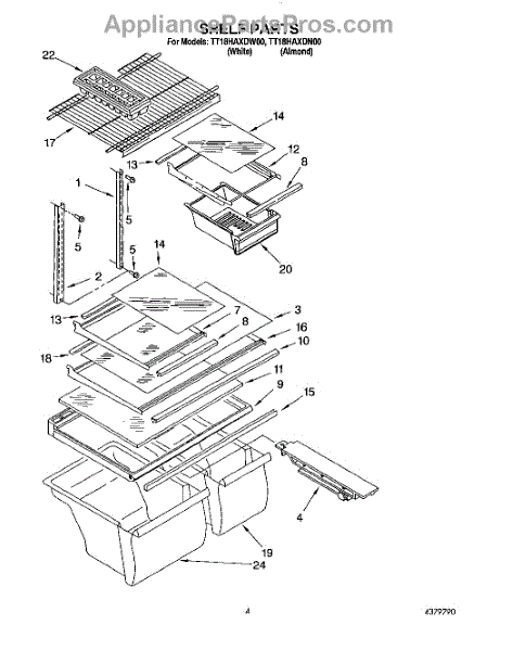 This genuine shelf assembly replaces a damaged or cracked refrigerator cabinet shelf to restore stable storage and keep items organized. It fits original mounting points for a secure, flush installation. What it does: